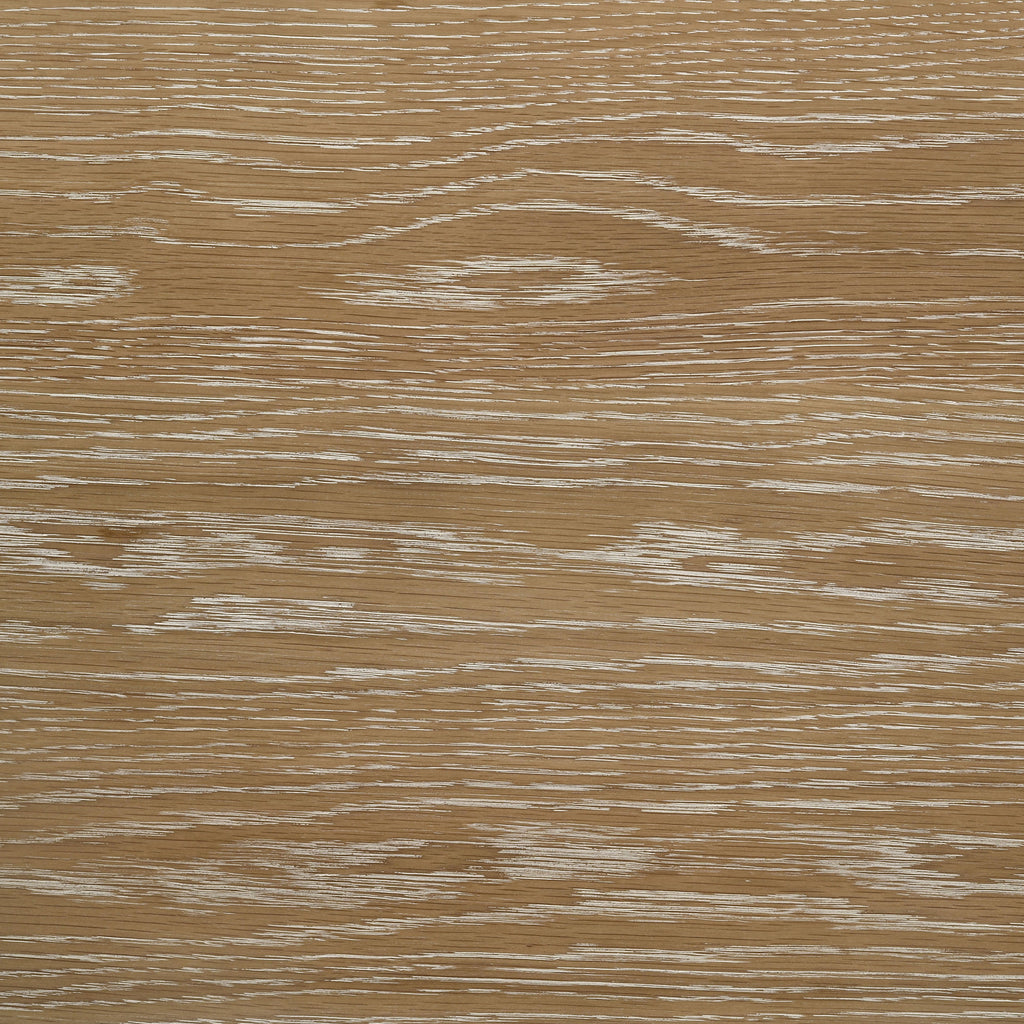 Balancing warmth with structure, this coffee table rests on cylindrical legs that anchor its linear profile. The softened corners and thick top deliver a subtle sculptural quality, while natural wood textures enhance its presence. Whether styled as a cocktail table or accent table, it invites relaxed connection and thoughtful display in the heart of the living room. Key Features: • Coffee table with rectangular top and round legs for a balanced modern profile • Brown oak finish emphasizes natural wood grain and tonal richness • Smooth corners and thick proportions create a grounded centerpiece • Crafted from solid rubberwood, engineered wood, and white oak veneer • Spacious surface supports books, trays, or decorative objects • Designed to coordinate with matching end table for full living room use