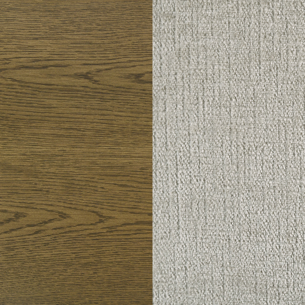 Complete your dining ensemble with this set of two modern side chairs. Offering inviting ambiance to your kitchen or dining room, the pair features a neutral look with a brown oak wood grain finish. Light tan fabric upholstery adds a touch of contrast and airy ambiance. Foam cushions complement with excellent comfort, offering welcoming flair to a comfortable and inviting silhouette. Each chair features a wooden base design with tapering legs for a strong presentation at your dining table.