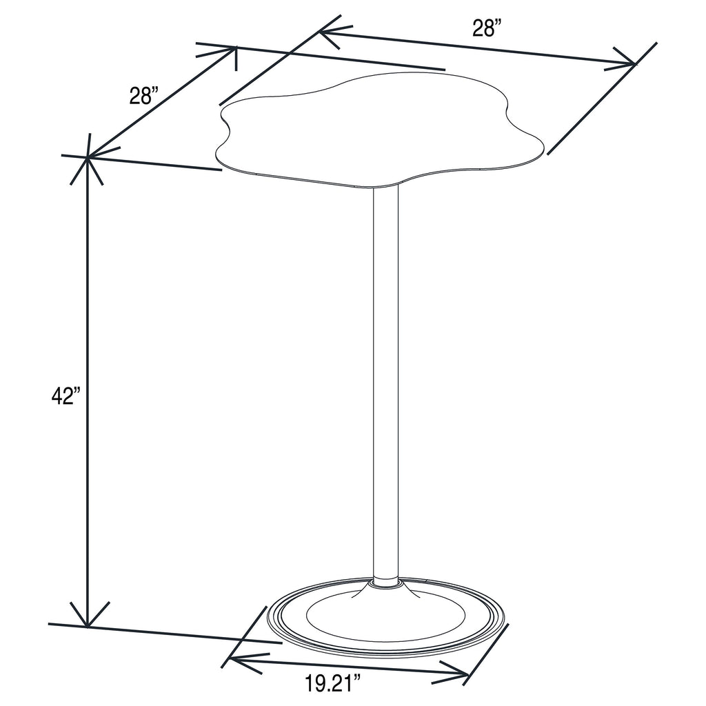 Gather your friends and family around the Keanu, a sleek, futuristic bar table for your casual cocktail or holiday party. Its organic cloud-shaped surface and modern aesthetic make it the perfect centerpiece for any space. Pair it with our black or white leatherette backless bar stools for a versatile look, or mix and match with our wide assortment of bar stools to take your space to new heights. Key Features: • The Keanu bar table is a sleek and modern centerpiece for any space • Its organic cloud-shaped surface adds a unique touch to any room • Pair the Keanu bar table with black or white leatherette backless bar stools for a versatile look • Mix and match with our wide assortment of bar stools to create a unique and stylish look • Perfect for casual cocktail or holiday parties, the Keanu bar table is sure to be the highlight of any gathering