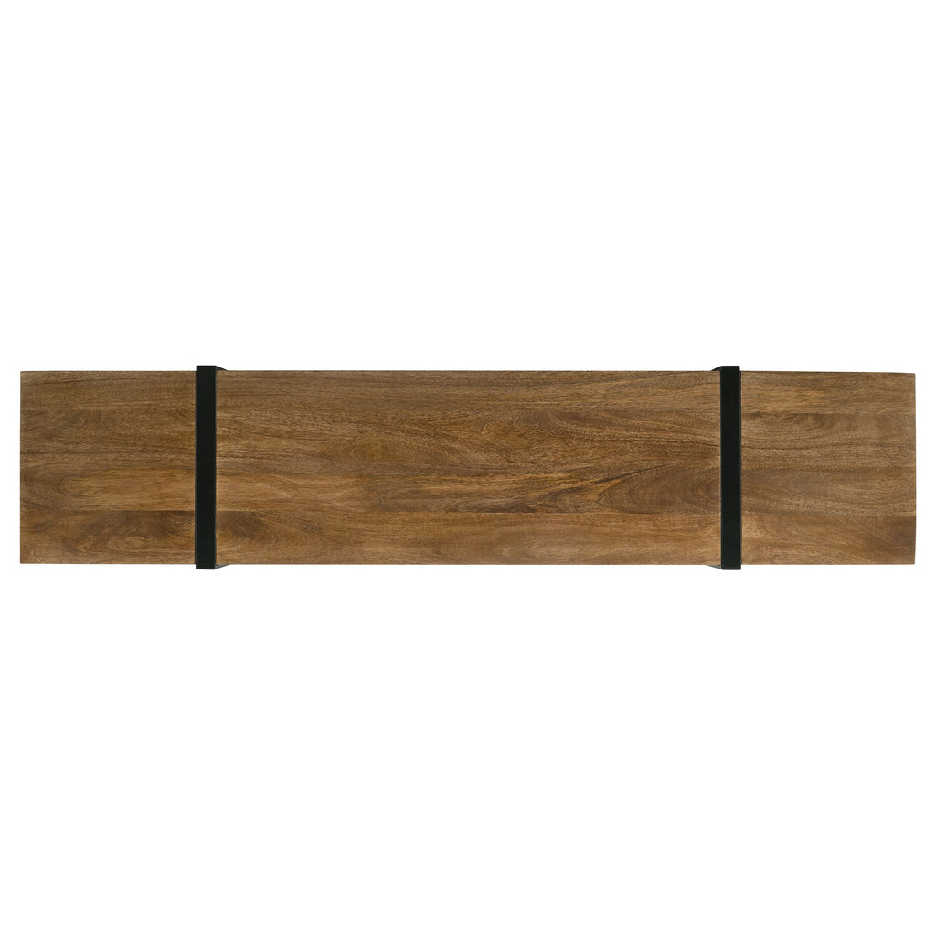 Elevate your entertainment space with this masterfully designed TV stand, perfectly suited for televisions up to 75". Constructed from robust Mango wood and accentuated with metal, it features a distinctive floating shelf, supported by sleek gunmetal-finished legs. This stand seamlessly blends durability with modern aesthetics, offering both function and flair for your living room. Key Features: • Elevate your entertainment space with this masterfully designed TV stand • Constructed from robust Mango wood and accentuated with metal • Features a distinctive floating shelf, supported by sleek gunmetal-finished legs • Seamlessly blends durability with modern aesthetics • Offers both function and flair for your living room