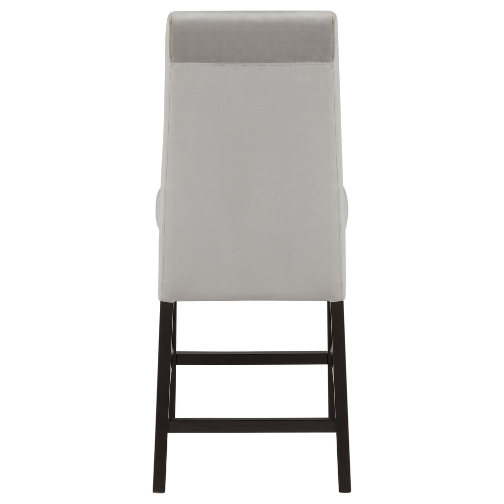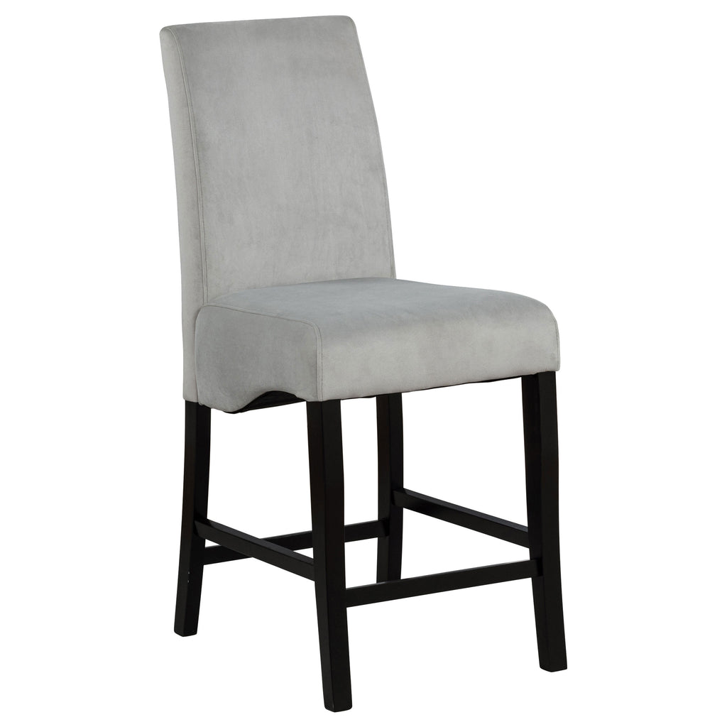 Upgrade your dining space with these elegant counter-height dining chairs. Designed with a classic Parsons silhouette, these chairs feature plush grey velvet upholstery for a soft, luxurious feel. The solid rubberwood frame, finished in deep black, offers durability and a striking contrast. A gently curved seat provides lasting comfort, while a built-in footrest ensures support. Perfectly complementing modern or transitional settings, these chairs add sophistication to any counter-height dining table. Key Features: • Counter-height Parsons chair with a refined and timeless silhouette • Grey velvet upholstery provides a soft, plush, and luxurious feel • Solid rubberwood frame in a deep black finish for durability and style • Gently curved seat enhances comfort for extended dining experiences • Sturdy construction with built-in footrests for added stability and support • Versatile design complements modern and transitional dining spaces