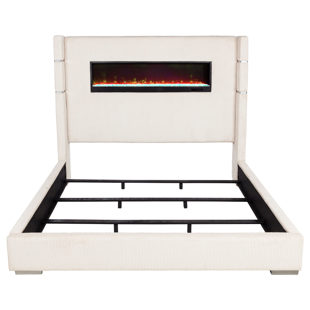 Transform any bedroom into a captivating sanctuary with this show-stopping bed, designed to draw attention and invite comfort. Available in plush corduroy upholstery, this bed effortlessly blends soft texture with modern sophistication. The integrated flame box offers a mesmerizing visual with 16 adjustable color options, all controlled via a convenient remote. With its eye-catching design and cozy feel, this bed elevates the bedroom experience while offering a stylish focal point.